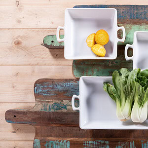 Krásná obdélníková zapékací mísa z portugalské keramiky. Ručně malovaná, vhodná na sladká i slaná jídla – nákypy, zapečené brambory nebo crumble. S praktickými oušky.