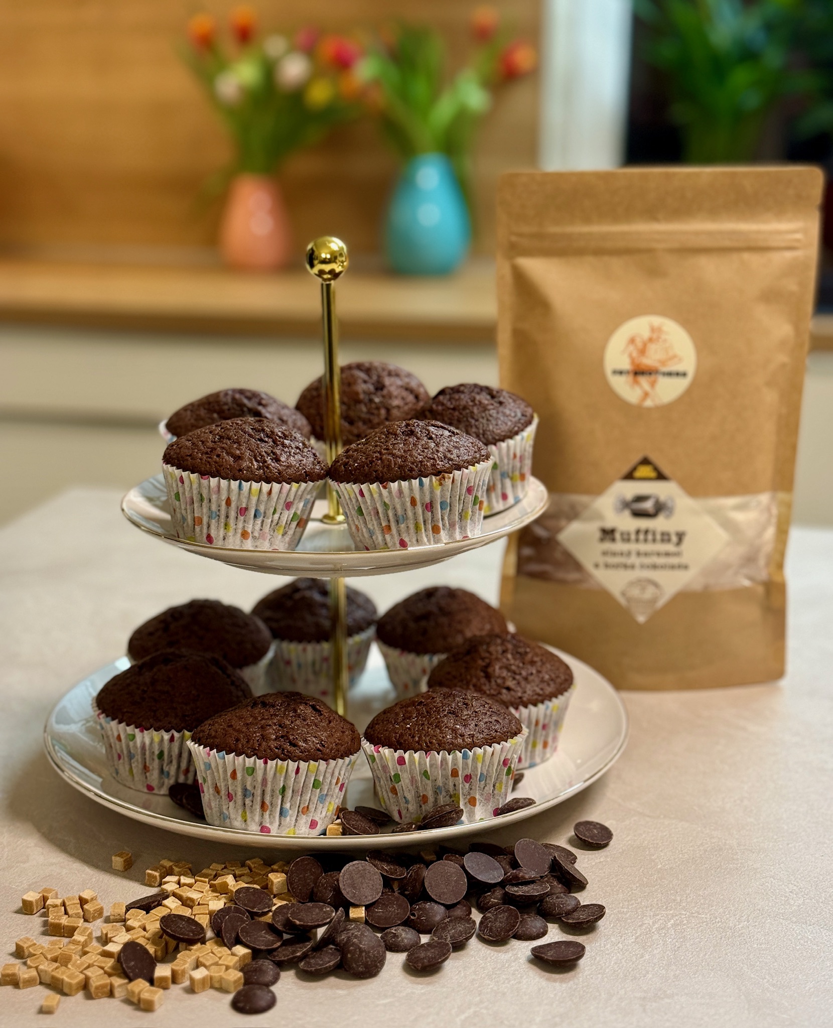 Muffiny s karamelkami a kapičkami hořké čokolády – směs na pečení