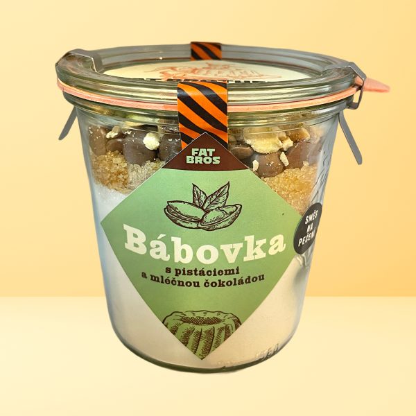 Sypká směs na pečení lahodné lehké bábovky s mléčnou čokoládou a pistáciemi v dárkovém balení. Směs jednoduše nasypte do mísy, smíchejte s vejcem, máslem a jogurtem a upečte. Za 40 minut máte lahodnou voňavou bábovku přímo na stole.
