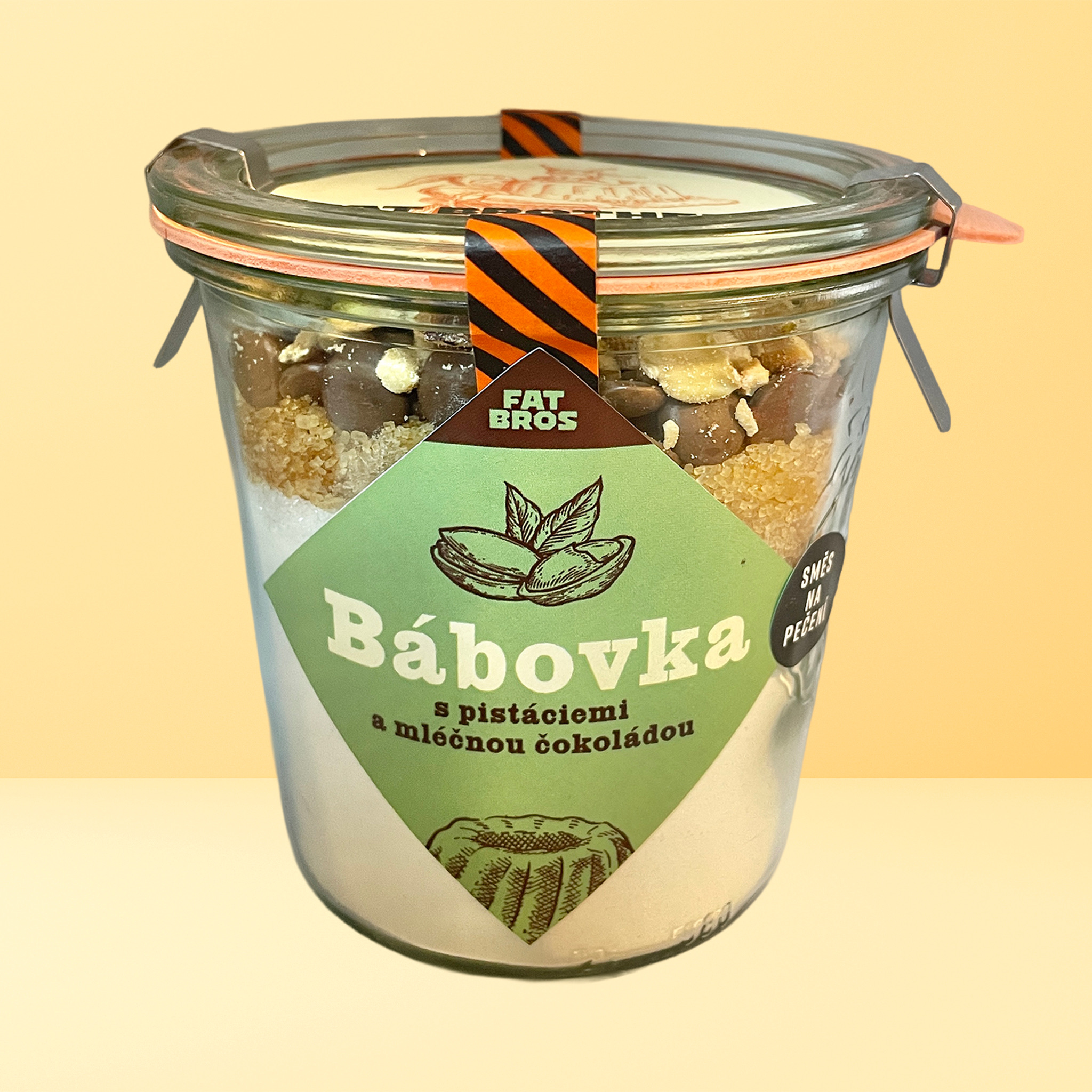 Luxusní bábovka s mléčnou čokoládou a pistáciemi v dóze