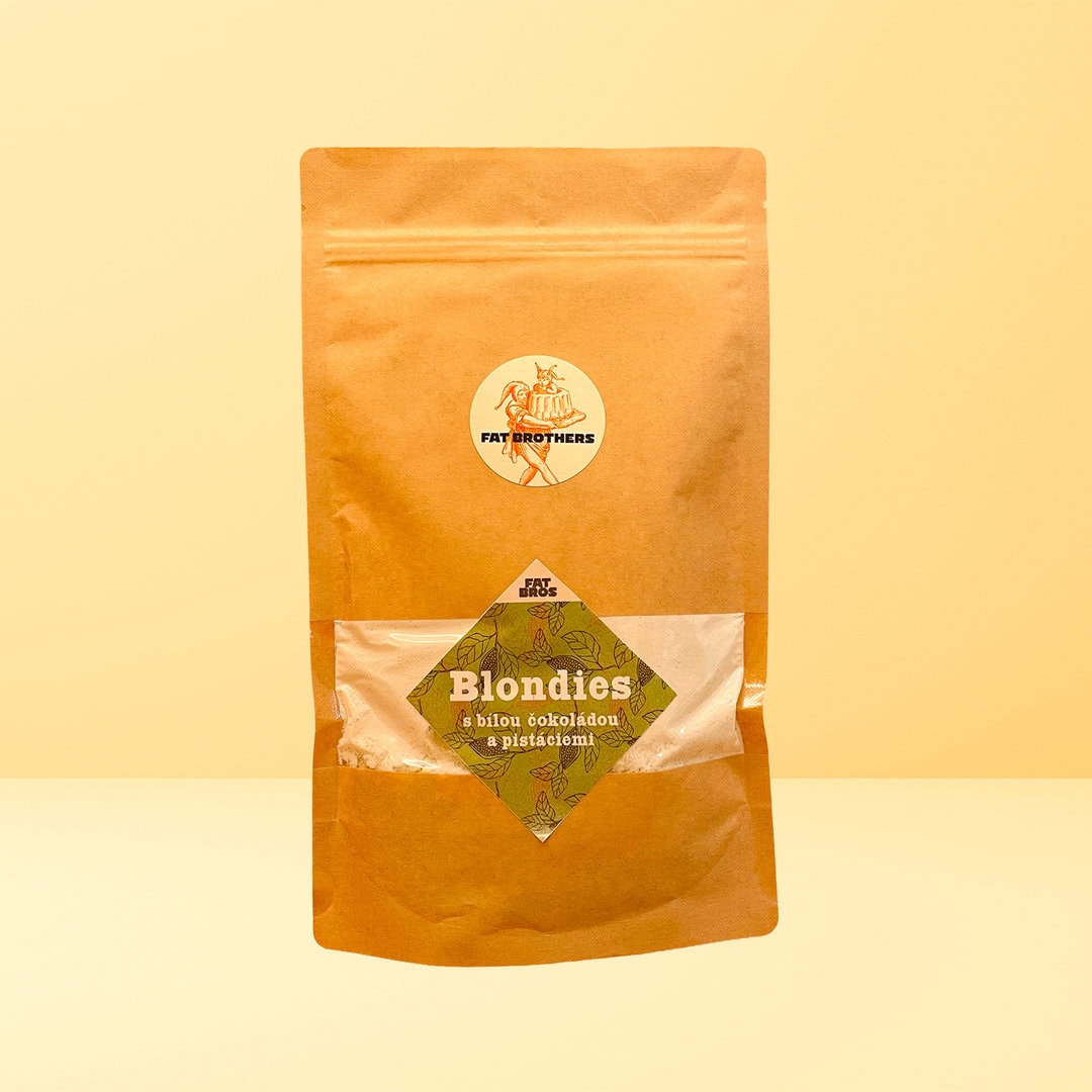 Sypká směs pro upečení výborných domácích koláčků blondies s bílou čokoládou a pistáciemi BEZ LEPKU. Z naší speciální směsi bezlepkové mouky, takže chutnají i bezlepkáčům. Vysypte do mísy, smíchejte s vajíčkem a máslem a dejte je upéct. Za 30 minut máte lahodné a vláčné blondies hotové. Množství stačí na plech cca 30×20, nebo dortovou formu o průměru 24 cm.