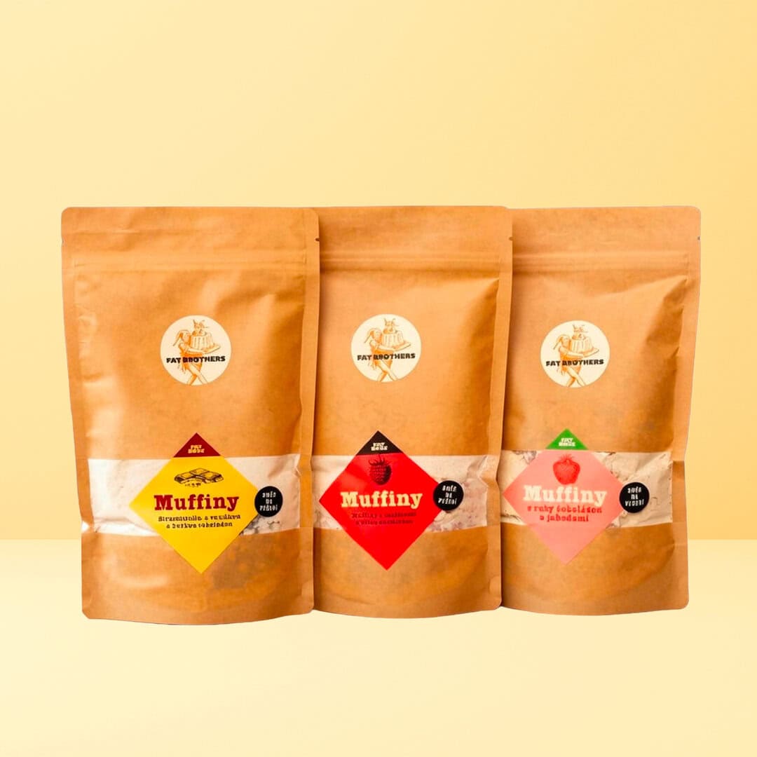 Tři směsi na muffiny – vanilkové s čokoládovými kapkami, malinami a bílou čokoládou a jahodami a ruby čokoládou. Všechny jsou vyrobeny z prvotřídních surovin. Žádné vážení, žádné zbytky. Stačí přidat 3 ingredience a za 20 minut máte upečeno.
