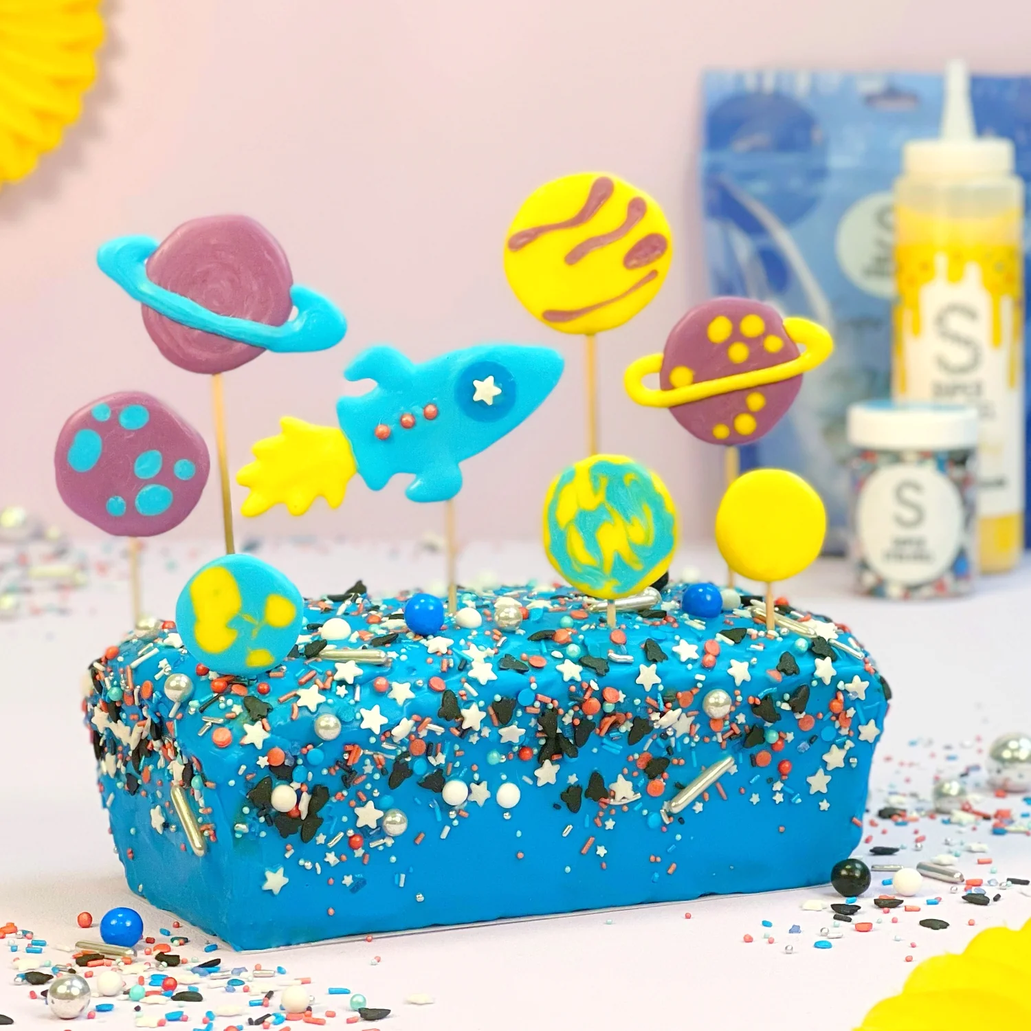 Pre perfektný koláč potrebujete modrú alebo čiernu polevu a hlavne vesmírny posyp