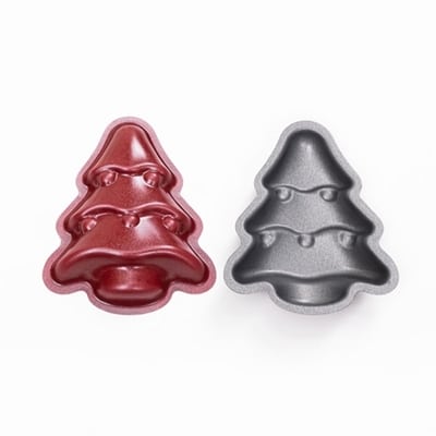 10 kusů formiček ve tvaru malých vánočních stromků – na medvědí tlapky a jiné koláčky v krásné vínové barvě.