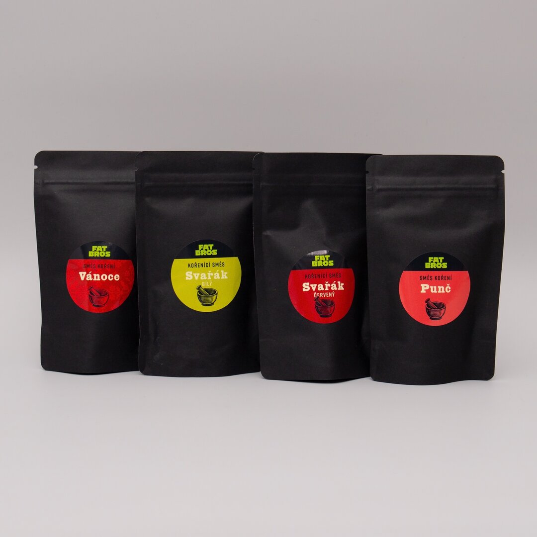 Lahodné voňavé směsi koření na svařené víno nebo punč a voňavý prášek – na pečené jablíčko, do horké čokolády či kakaa. Využijte našich etiket nebo si vytvořte vlastní. Vybrat si můžete také různé obaly – sklo, různobarevné sáčky se zipem. Přizpůsobíme vám velikost, barvu i etikety.