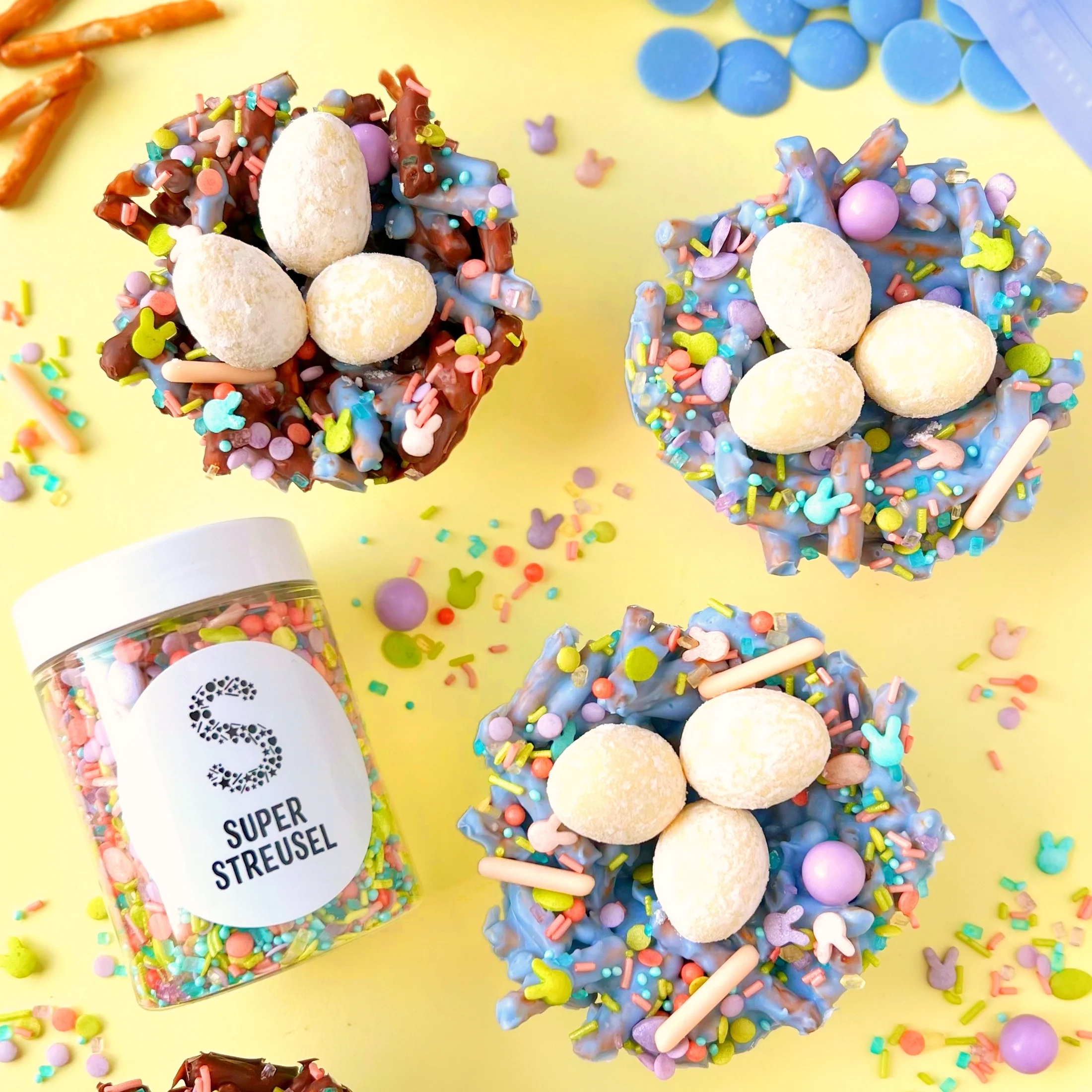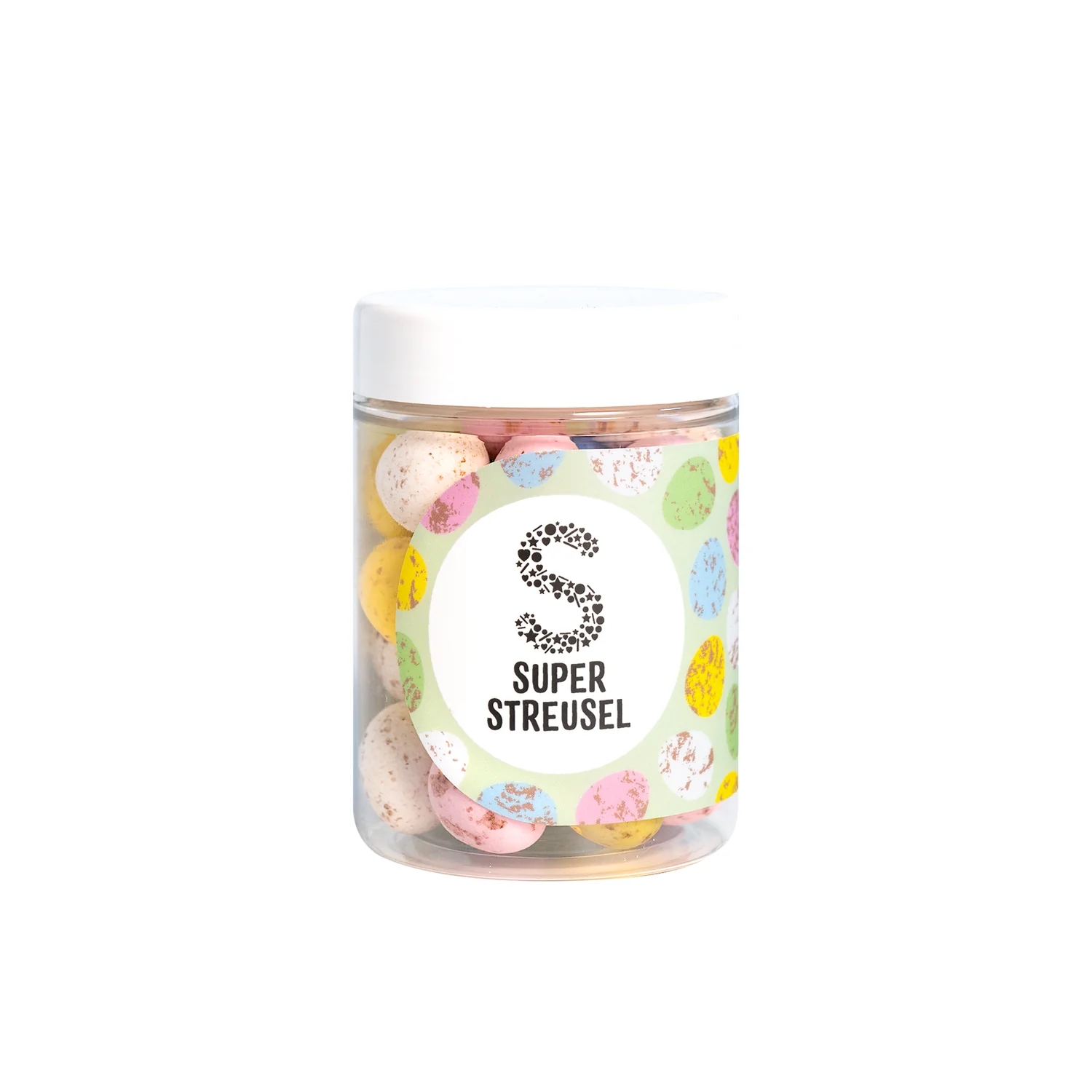 Ach jaj, ach jaj, ach jaj – co se to tak krásně kutálí přes velikonoční trávu? Tato čokoládová vajíčka jsou něčím výjimečným: krémová čokoládová nádivka, obalená v jemné čokoládě a barevná cukrová poleva v třpytivých odstínech růžové, žluté, bílé, zelené a modré.