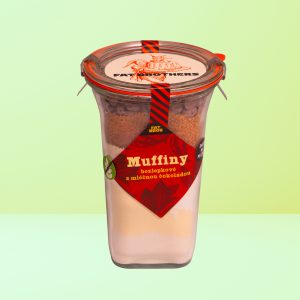 BEZLEPKOVÉ muffiny se 3 druhy čokolády „méně cukru!“ – směs na pečení. Oblíbené sladké muffiny s bílou, mléčnou a hořkou čokoládou, tentokrát bezlepkové, ze směsi kukuřičné, kaštanové, pohankové a rýžové mouky. Pečení z domácích surovin, beze zbytků a nepořádku. V krásné dóze, kterou můžete použít na skladování, zavařování nebo dekorace.