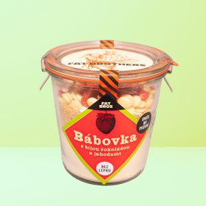 Bezlepková bábovka s jahodami a bílou čokoládou – směs na pečení. Sypká směs na báječnou bábovku z naší speciální směsi kaštanové, kukuřičné, pohankové a rýžové mouky s bílou čokoládou a jahodami nejen pro bezlepkovou dietu. Stačí nasypat do mísy, smíchat s vejci, máslem a tvarohem a upéct. Pečení z domácích surovin, beze zbytků a nepořádku. Dózu můžete použít k zavařování, na výrobu dekorací nebo na skladování potravin. Vhodné jako dárek.